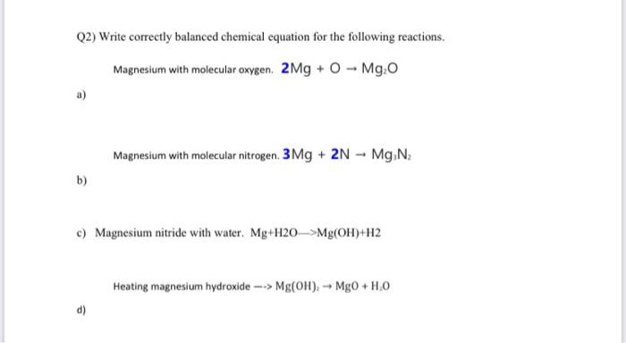 Magnesium Reacts With Hot Water What Is The Balanced Chemical Equation Quora