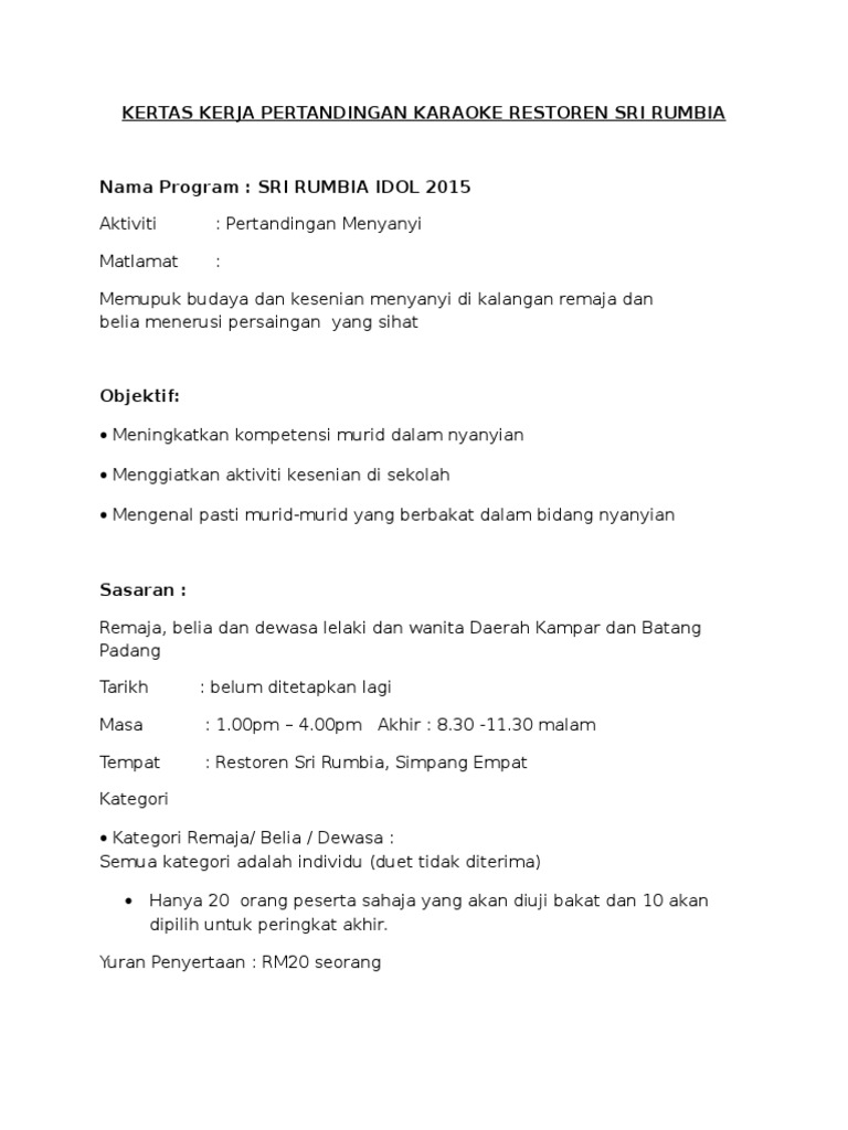 Kertas Kerja Pertandingan Karaoke 2 Pdf